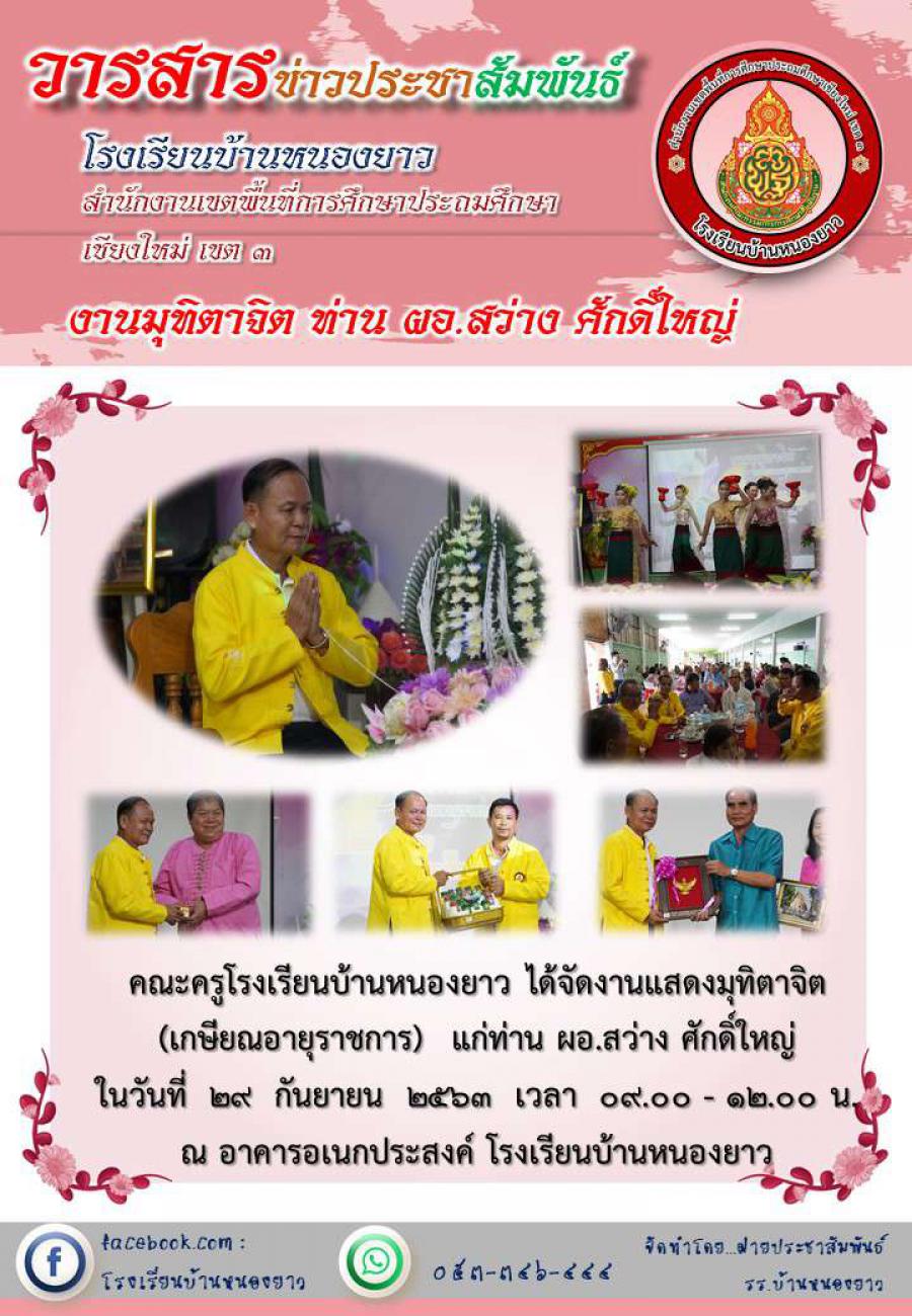คณะครูโรงเรียนบ้านหนองยาว ได้จัดงานแสดงมุทิตาจิต (เกษียณอายุราชการ)  แก่ท่าน ผอ.สว่าง ศักดิ์ใหญ่