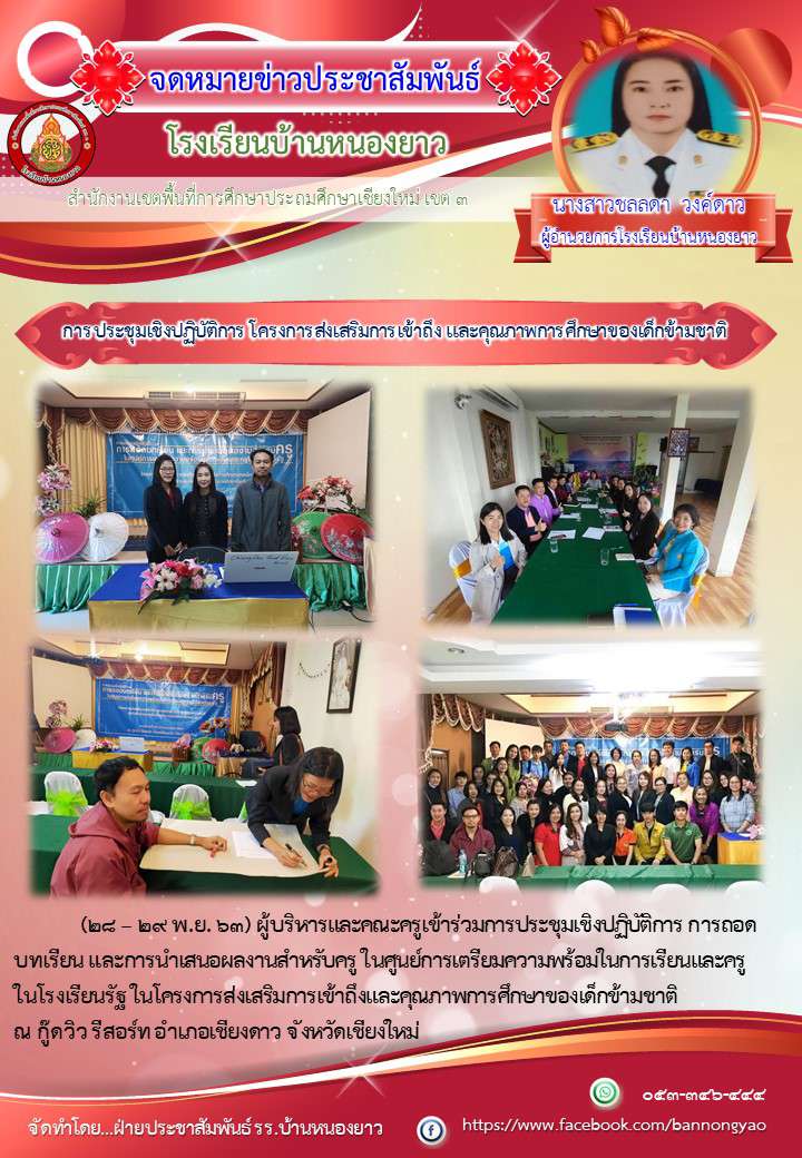 (๒๘ – ๒๙ พ.ย. ๖๓) ผู้บริหารและคณะครูเข้าร่วมการประชุมเชิงปฏิบัติการ การถอดบทเรียน และการนำเสนอผลงานสำหรับครู ในศูนย์การเตรียมความพร้อมในการเรียนและครูในโรงเรียนรัฐ ในโครงการส่งเสริมการเข้าถึงและคุณภาพการศึกษาของเด็กข้ามชาติ
