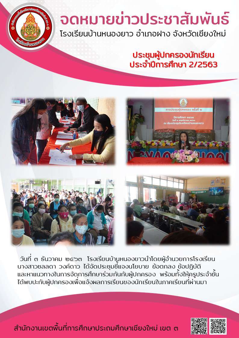 วันที่ ๓ ธันวาคม ๒๕๖๓ โรงเรียนบ้านหนองยาวนำโดยผู้อำนวยการโรงเรียน นางสาวชลลดา วงค์ดาว ได้จัดประชุมชี้แจงนโยบาย ข้อตกลง ข้อปฏิบัติ และหาแนวทางในการจัดการศึกษาร่วมกันกับผู้ปกครอง พร้อมทั้งให้ครูประจำชั้น ได้พบปะกับผู้ปกครองเพื่อแจ้งผลการเรียนของนักเรียนในภาคเรียนที่ผ่านมา