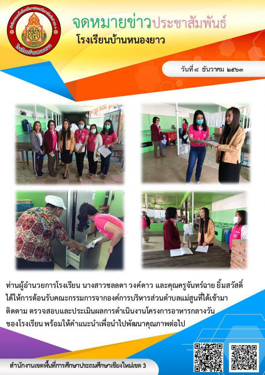 ท่านผู้อำนวยการโรงเรียน นางสาวชลลดา วงค์ดาว และคุณครูจันทร์ฉาย ยิ้มสวัสดิ์ ได้ให้การต้อนรับคณะกรรมการจากองค์การบริหารส่วนตำบลแม่สูนที่ได้เข้ามาติดตาม ตรวจสอบและประเมินผลการดำเนินงานโครงการอาหารกลางวันของโรงเรียน พร้อมให้คำแนะนำเพื่อนำไปพัฒนาคุณภาพต่อไป